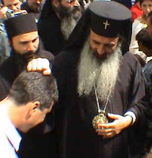 La bendición tiene varios significados. El primero es el saludo. Un sacerdote puede estrechar la mano a otro sacerdote del mismo rango, mientras que todos los demás, inclusive los diáconos, solicitan su bendición. Para esto se colocan las palmas de las manos abiertas, la derecha sobre la izquierda, como para recoger y besar la mano del sacerdote que imparte la bendición, en son de reverencia al rango sacerdotal. Y nada más. La colocación de las manos en la posición indicada no tiene ningún significado secreto, la gracia divina no baja hacia ellas, como dicen algunos. Se puede pedir la bendición al sacerdote no sólo dentro del templo sino también en la calle y también si él esta vestido de civil. Sin embargo, al encontrar en la calle a un sacerdote vestido de civil que no le conoce a uno, sería más aconsejable no pedirle la bendición.
